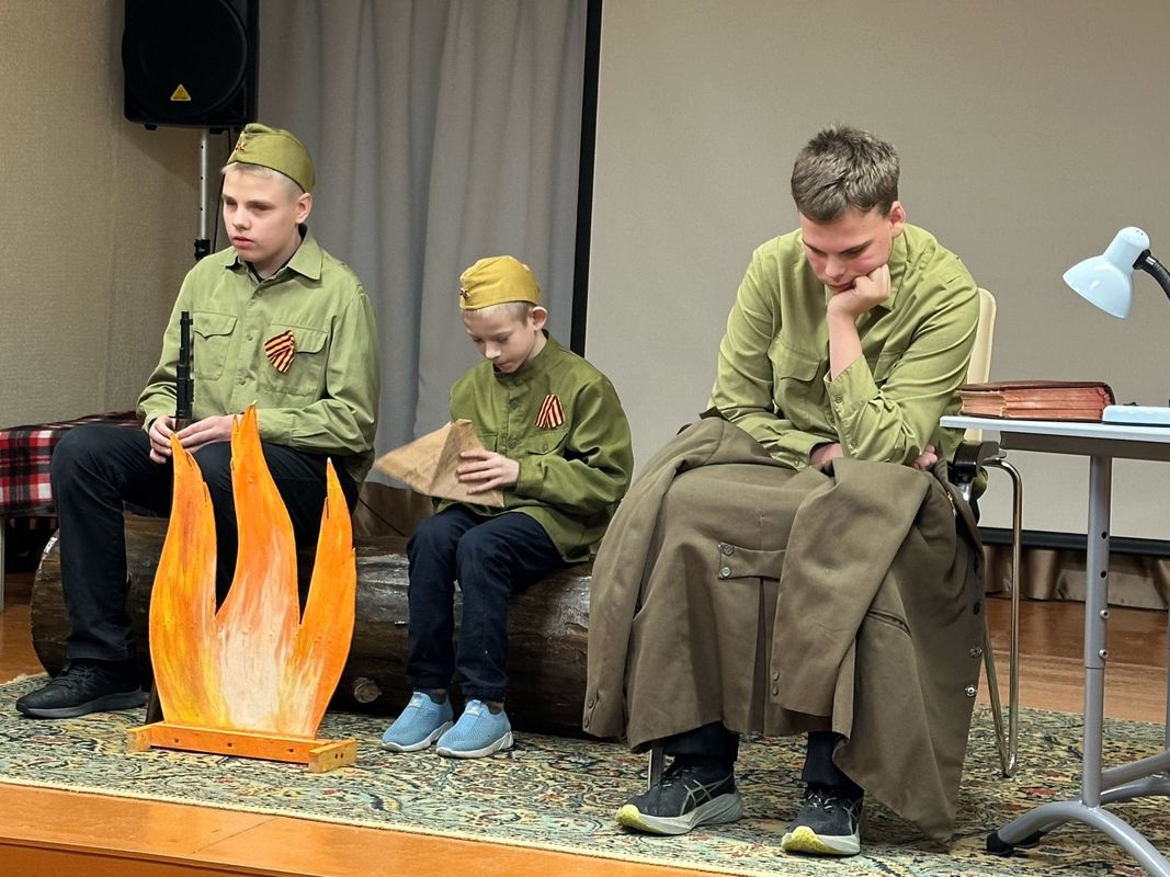 Наш школьный театр представил постановку «Воспоминания солдата». Программа фестиваля очень интересная и эмоционально насыщенная, творческая атмосфера царила на протяжении всего дня. После выступлений для ребят были организованы мастер-классы по изготовлению маскировочных сетей и окопных свечей.